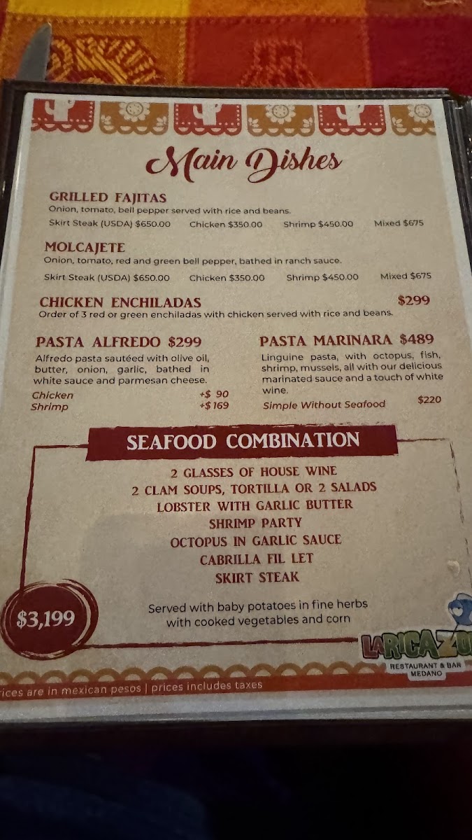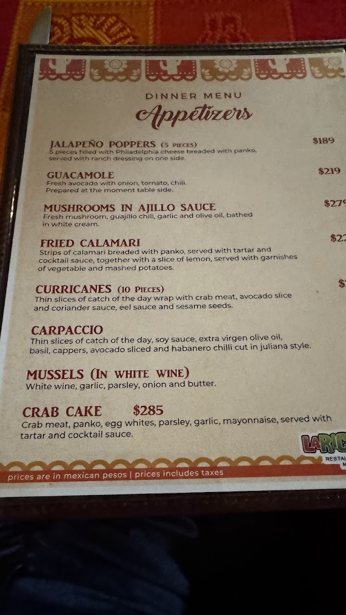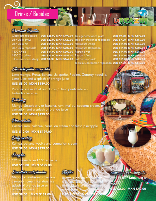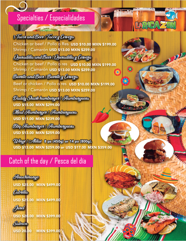La Ricazon offers a menu that balances traditional Mexican flavors with fresh, vibrant ingredients in a relaxed setting. The selection moves effortlessly from satisfying main dishes to lighter bites and refreshing drinks, making it well-suited for casual meals or lively evenings out.